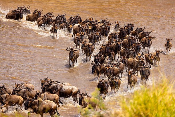 Witness dramatic Mara River crossings or Ndutu calving season (seasonal)